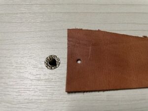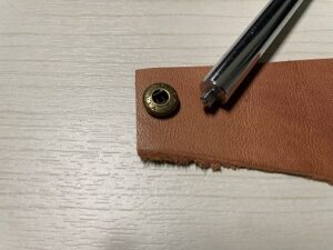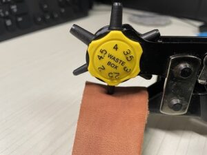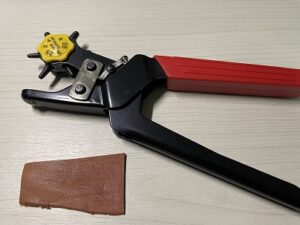 まずは取り付ける革に穴をあけます。